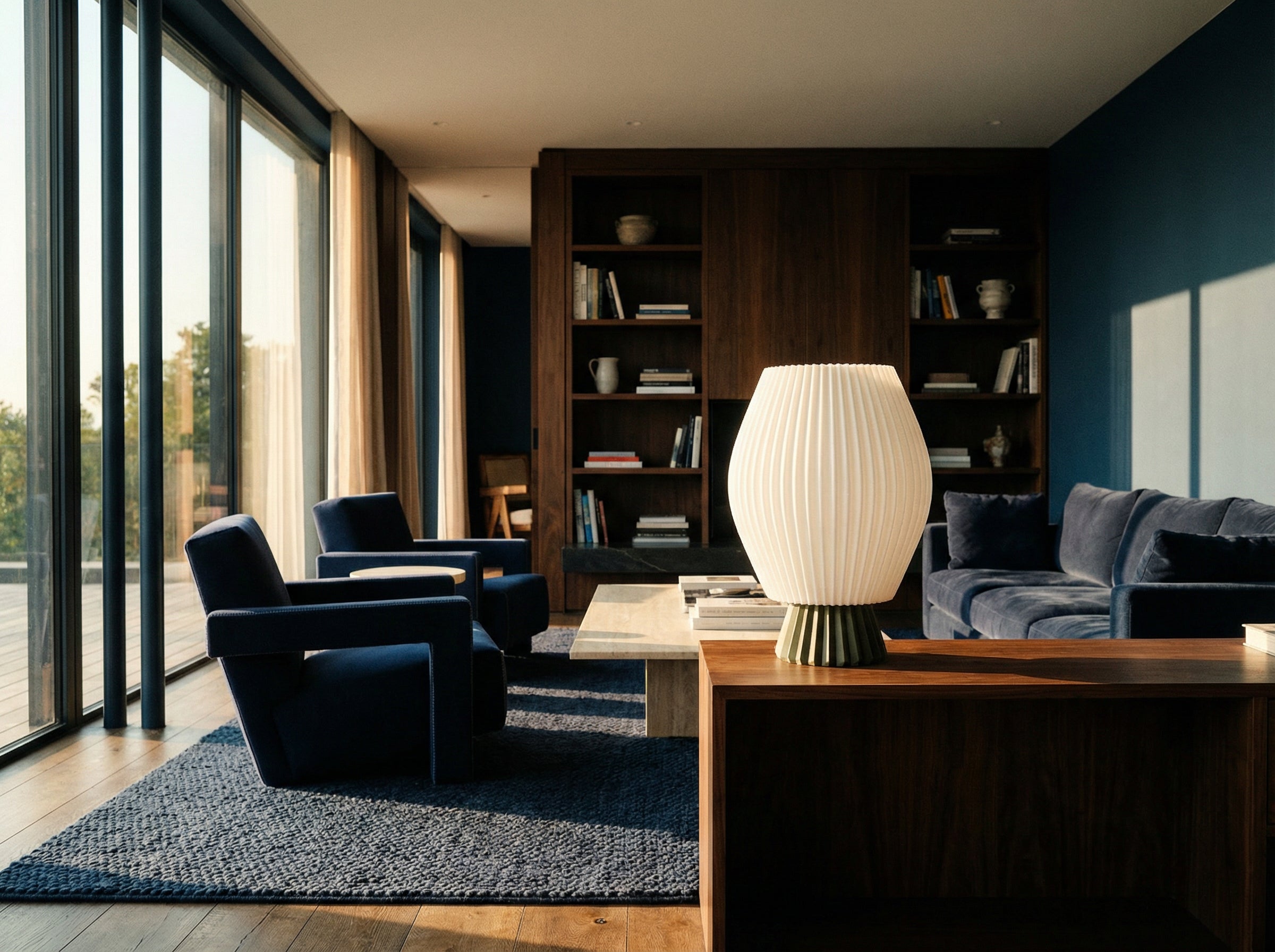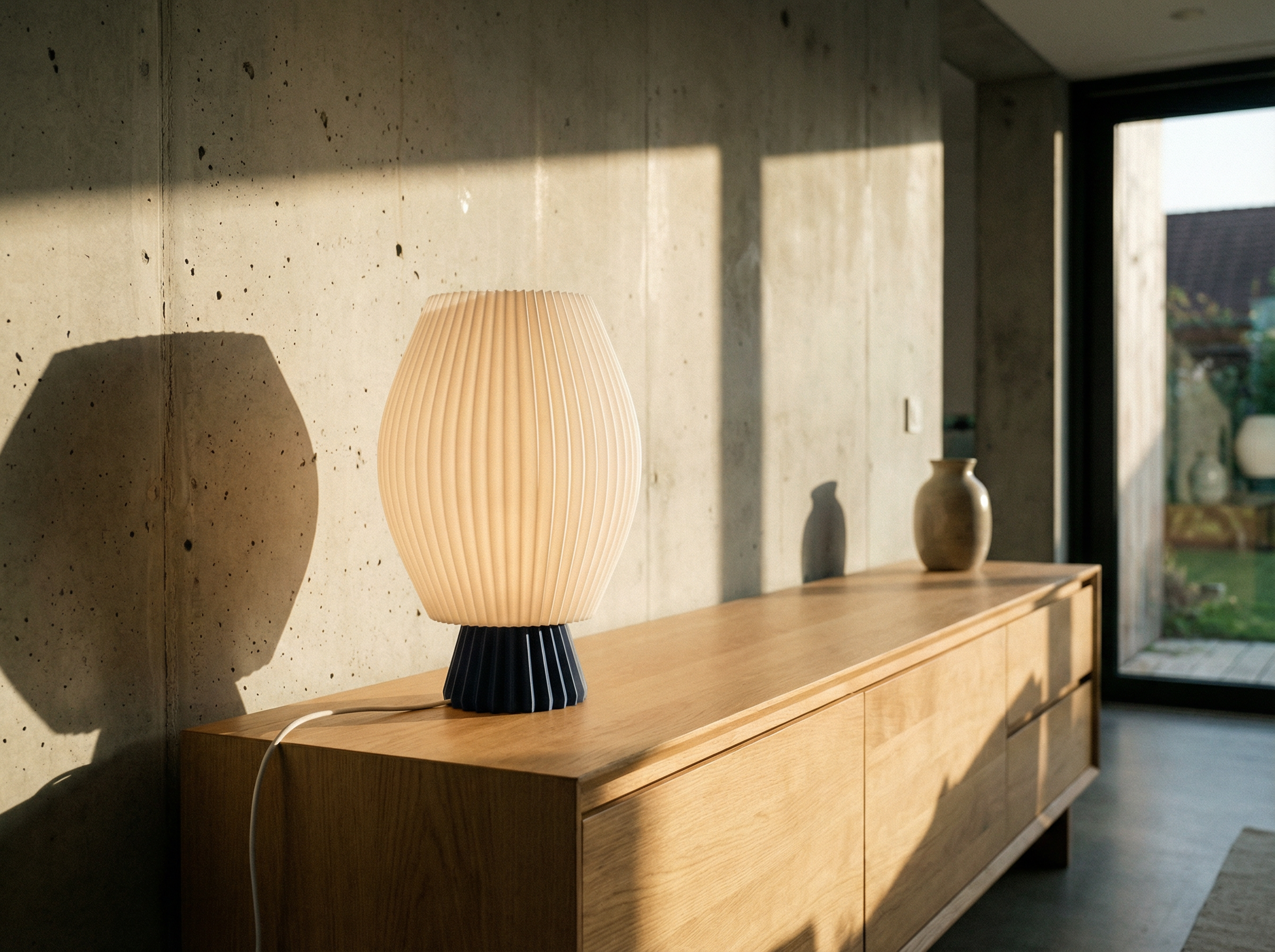 Un volume nervuré qui diffuse une lumière douce, inspiré par l’architecture du Havre.